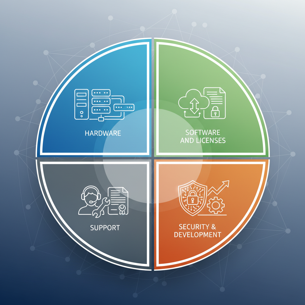 Поддержка пользователей и инфраструктуры (зарплаты ИТ-специалистов или контракты на обслуживание).